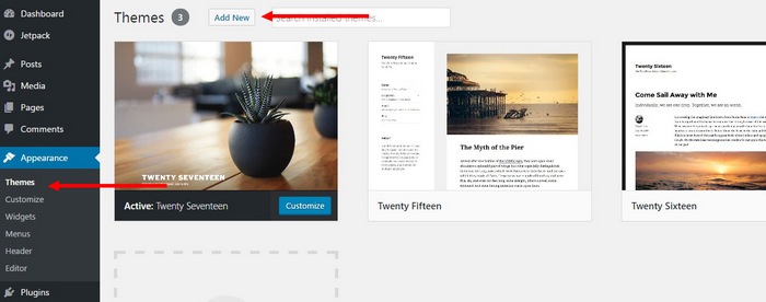 - Dans Apparence > Thèmes, cliquez sur Ajouter un nouveau.