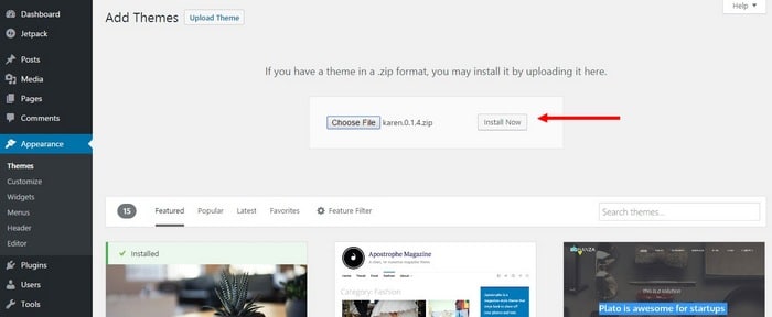 - Choisissez le fichier ZIP du thème obtenu lors de l’achat.